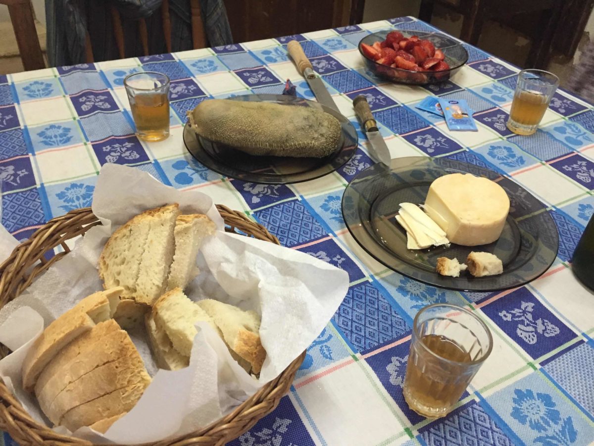 Maranho: enchido misto de carnes com arroz, hortelã e outras ervas, feito no bucho da cabra ou da ovelha. Não é em todo lugar que se come maranho, mas na Casa Ti Augusta tem que comer. Se estiver por estas bandas não deixe de provar, é esquisito mas é gostoso, me lembrou um pouco os charutinhos da comida árabe, a hortelã, a carne com arroz…muito bom. Acompanhado com um belo vinho tinto da região, forte e encorpado.