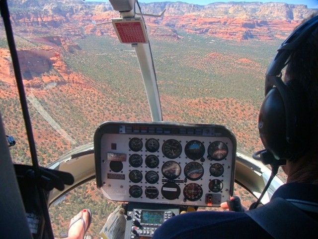 E assim quase perdi um passeio incrível! Um tour de helicóptero pelas formações rochosas em Sedona. Sorte minha que o piloto foi muito hábil e percebeu que seria difícil para mim; me ofereceu então que eu sentasse ao lado dele na frente . E assim consegui!