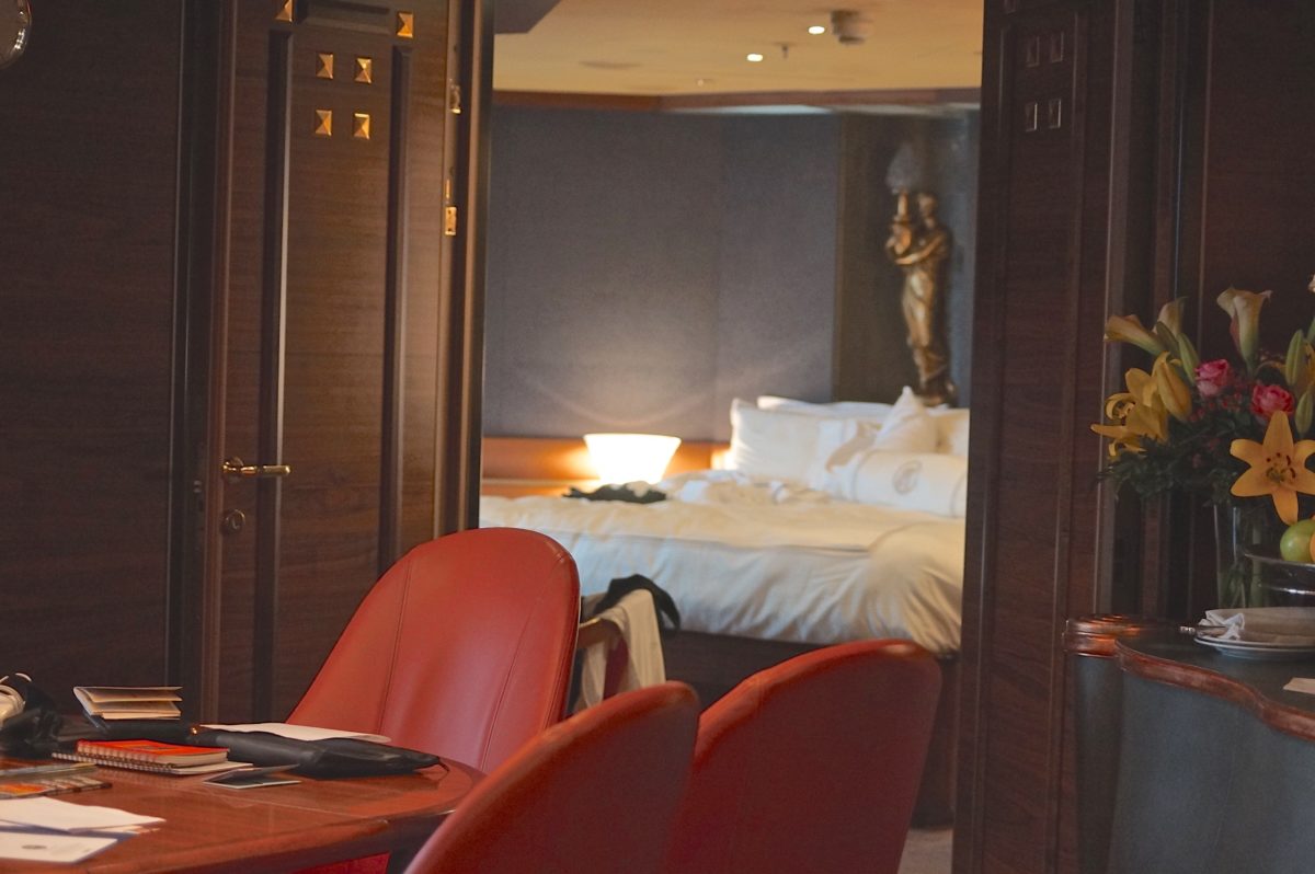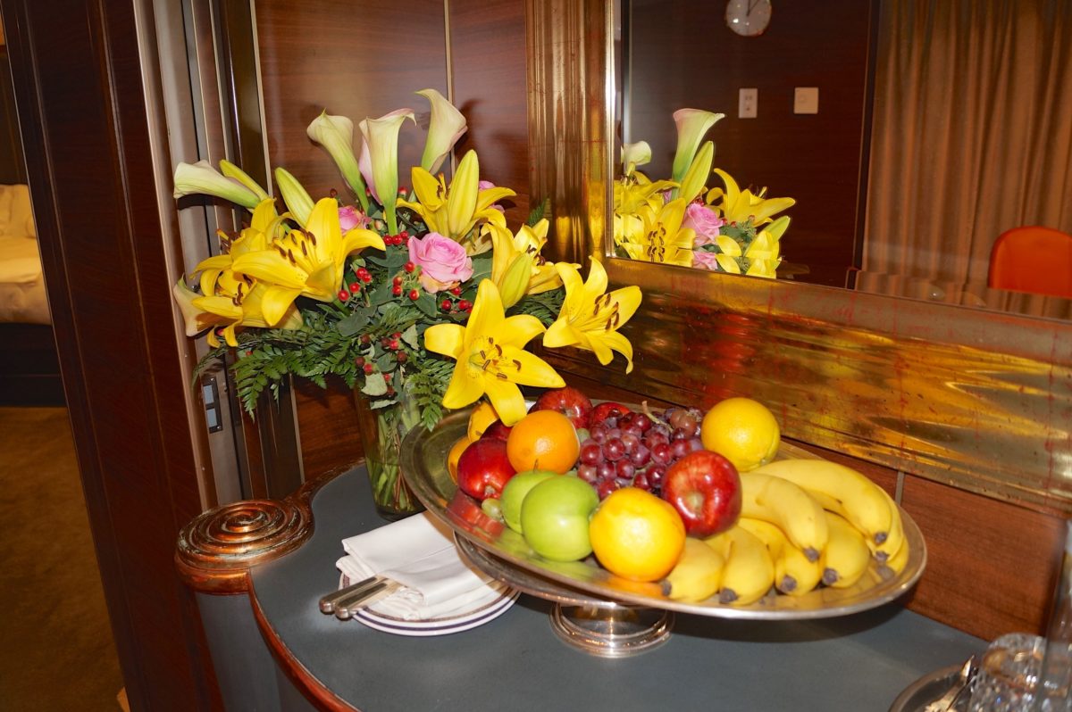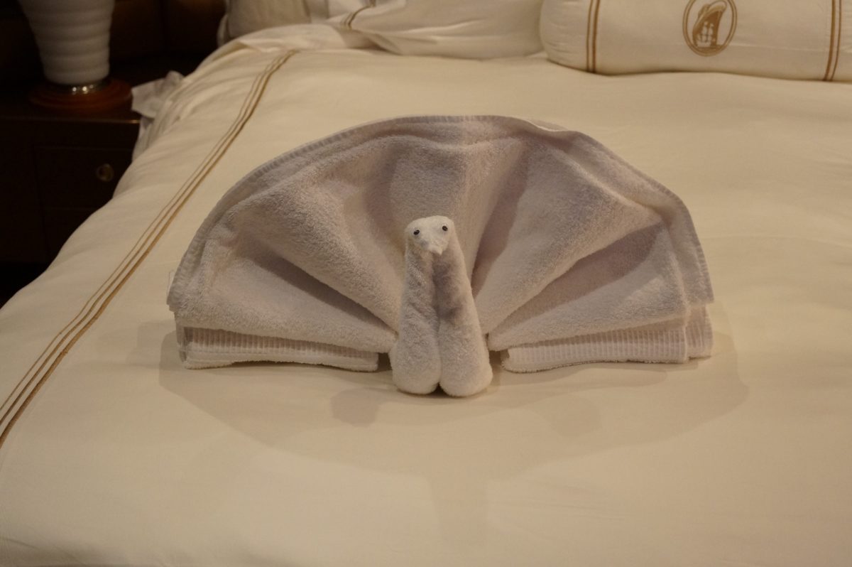 Nossa cabine era absurdamente grande e cheia de mimos.