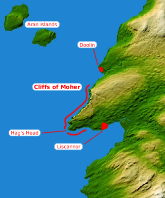 Ainda na costa oeste em Liscannor Bay, no Condado de Clare está a cidade de surf, Lahinch, com lojas de prancha, pubs, e aquele clima jovem do esporte. É uma pequena e animada estância de férias com atmosfera e energia própria. Sua longa praia tem ondas que atraem o surf e a canoagem do mundo todo.